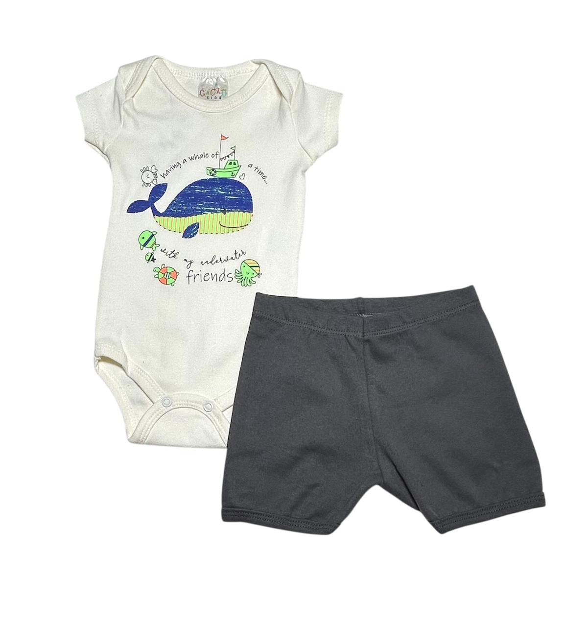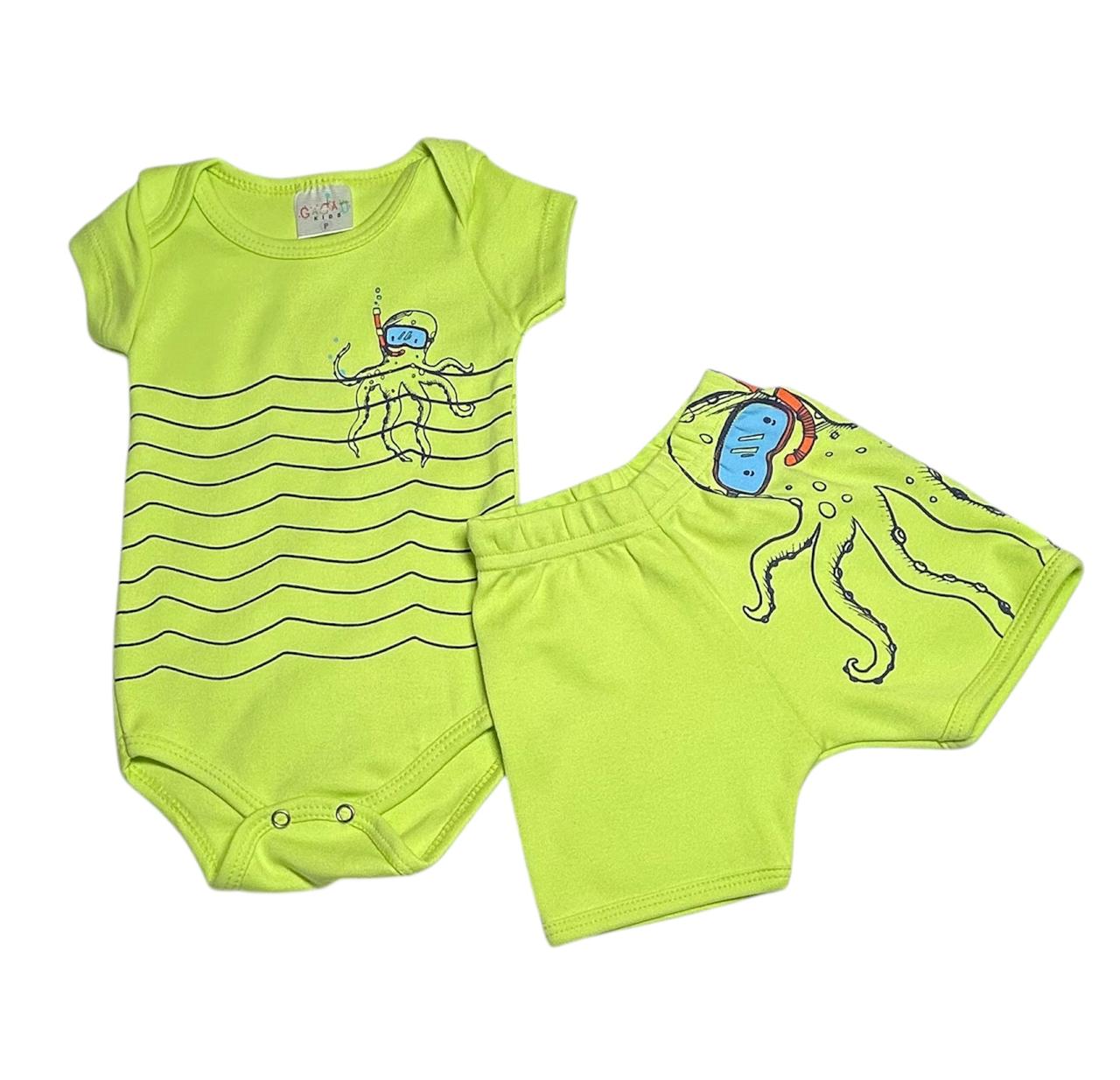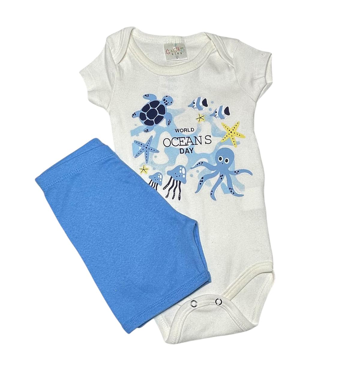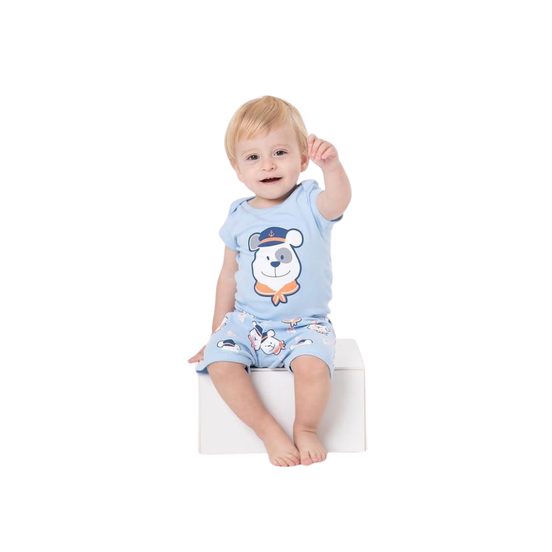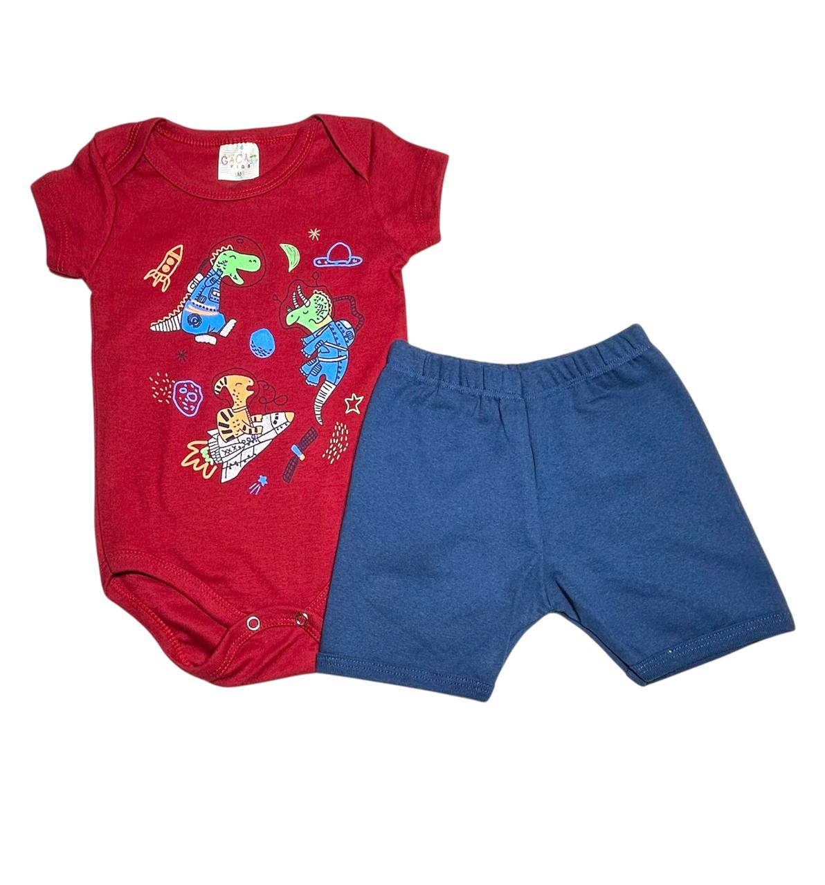• Conjunto com body de manga curta + shorts ou tapa fralda, conforme o tamanho